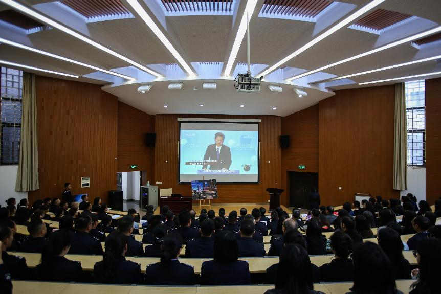 昆明边检站党委副书记、政治委员诸军诵读了习近平总书记给中国人民公安大学在读英烈子女回信原文,带领大家重温和感悟习近平总书记的殷切关怀和嘱托。
