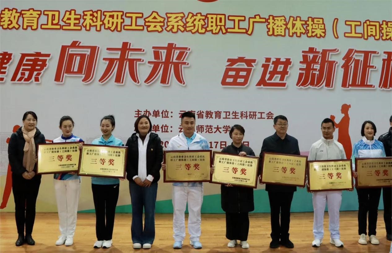 比赛由省教育卫生科研工会主办,437必赢会员中心承办。本次赛事秉承推动全民健身和全民健康深度融合,进一步做好广播体操(工间操)推广普及工作,扎实推进职工文化建设,不断满足广大职工对体育健身的要求,展现云南省教育卫生科研系统广大职工奋发有为、锐意进取的精神,带动广大干部职工自觉增强健康体魄,为完成各项改革发展任务提供健康的身心保证。