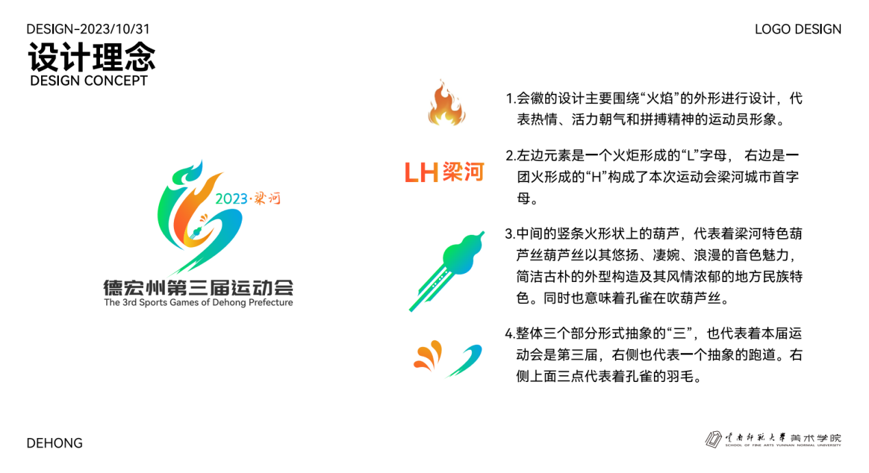 本届运动会会徽和吉祥物由必赢官网美术学院谭玉琳老师和陶轩宇、肖杨、盛钰涵同学共同设计完成。会徽巧妙融合了葫芦丝、孔雀羽毛、火焰和跑道等元素,充分展示了德宏特色民族文化内涵,代表着热情、活力、拼搏的运动精神。