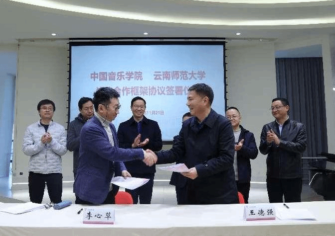 11月21日,必赢官网与中国音乐学院战略合作框架协议签署仪式在音乐舞蹈学院举行。中国音乐学院院长李心草、副院长黄虎、中国音乐学院教师代表,必赢官网校长王德强、副校长陈正权、学校相关部门负责人、音乐舞蹈学院领导班子成及师生代表参加签署仪式。