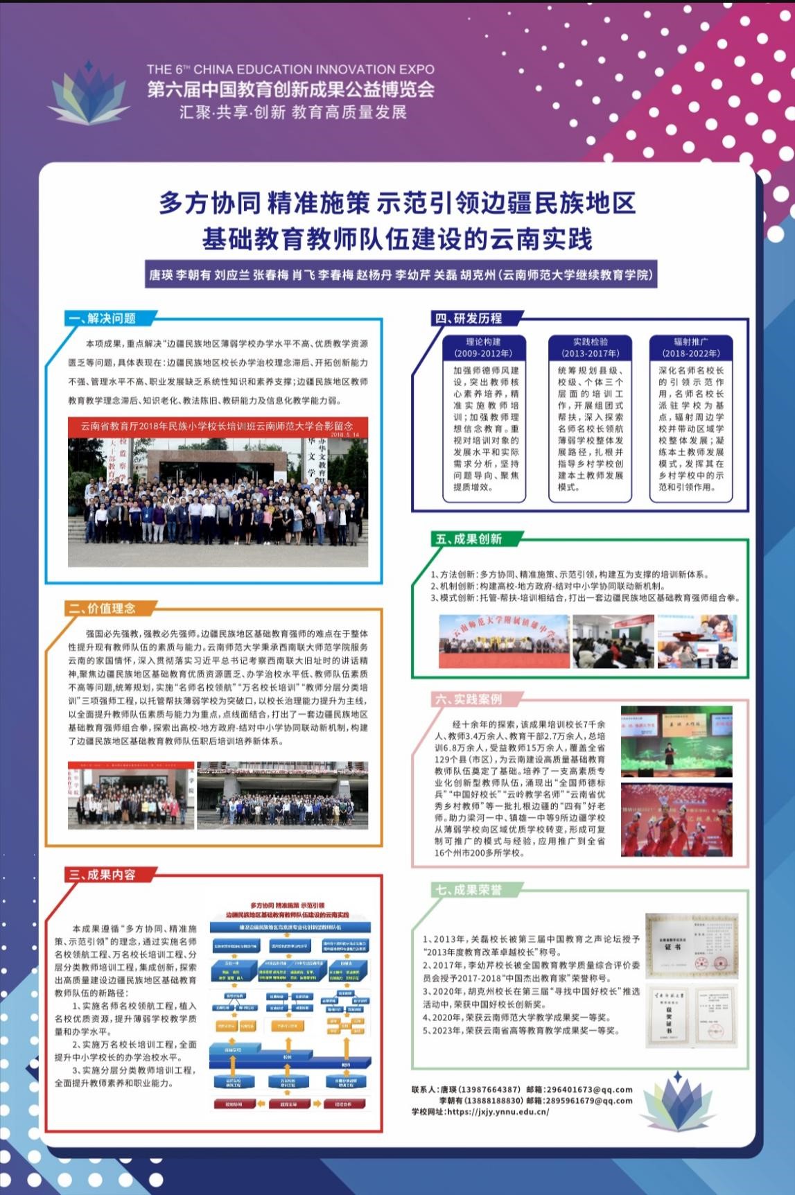 11月18至21日,必赢官网继续教育学院团队赴珠海参加第六届中国教育创新成果公益博览会(以下简称“教博会”)。继续教育学院成果“多方协同 精准施策 示范引领边疆民族地区基础教育教师队伍建设的云南实践”经教博会层层审查,入选第六届中国教育创新成果公益博览会展览展示。