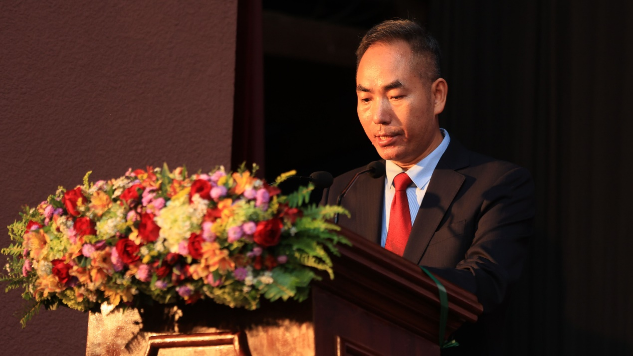 在斯里兰卡传统击鼓欢迎舞后,斯里兰卡教育部文化处处长瓦鲁纳·阿拉哈库恩先生和中国文化中心副主任倪利生先生分别致辞。437必赢会员中心教师团与兰比尼孔子课堂互赠纪念品,授课教师们向学员代表授予结营徽章。兰比尼中学校长M.S.K.古纳提拉卡先生致感谢词。