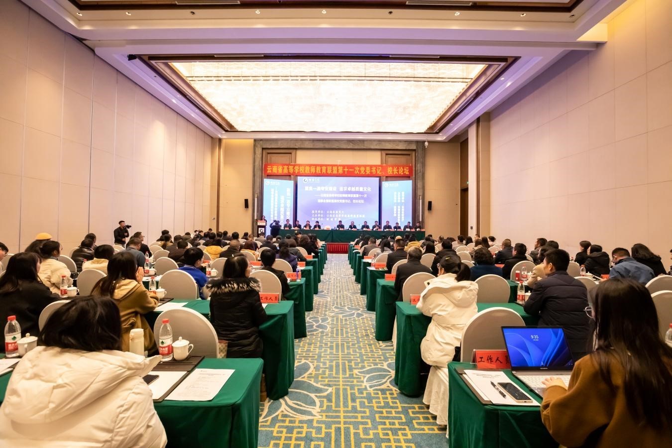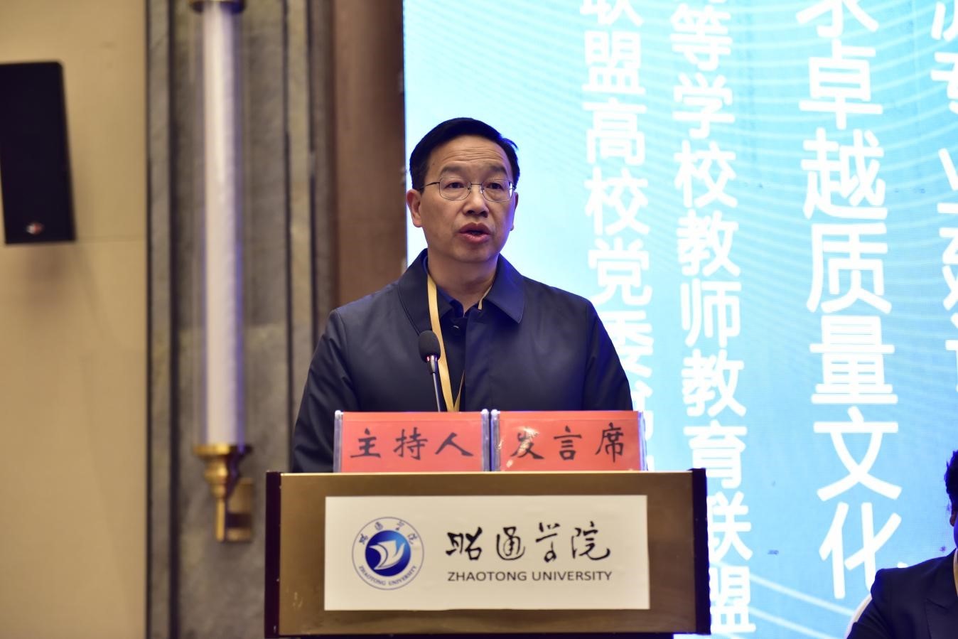 12月6日上午,联盟高校党委书记、校长论坛在昭通学院举行。云南省教育厅高等教育处,联盟各高校党委书记、校长以及教务处代表,高等教育出版社代表,14所联盟高校与昭通学院副处级以上干部等100余人参加了论坛。论坛以“聚焦一流专业建设 追求卓越质量文化”为主题,分两个阶段进行。第一阶段为论坛开幕式,由昭通学院校长李若青主持;第二阶段为论坛,由437必赢会员中心副校长陈正权主持。
