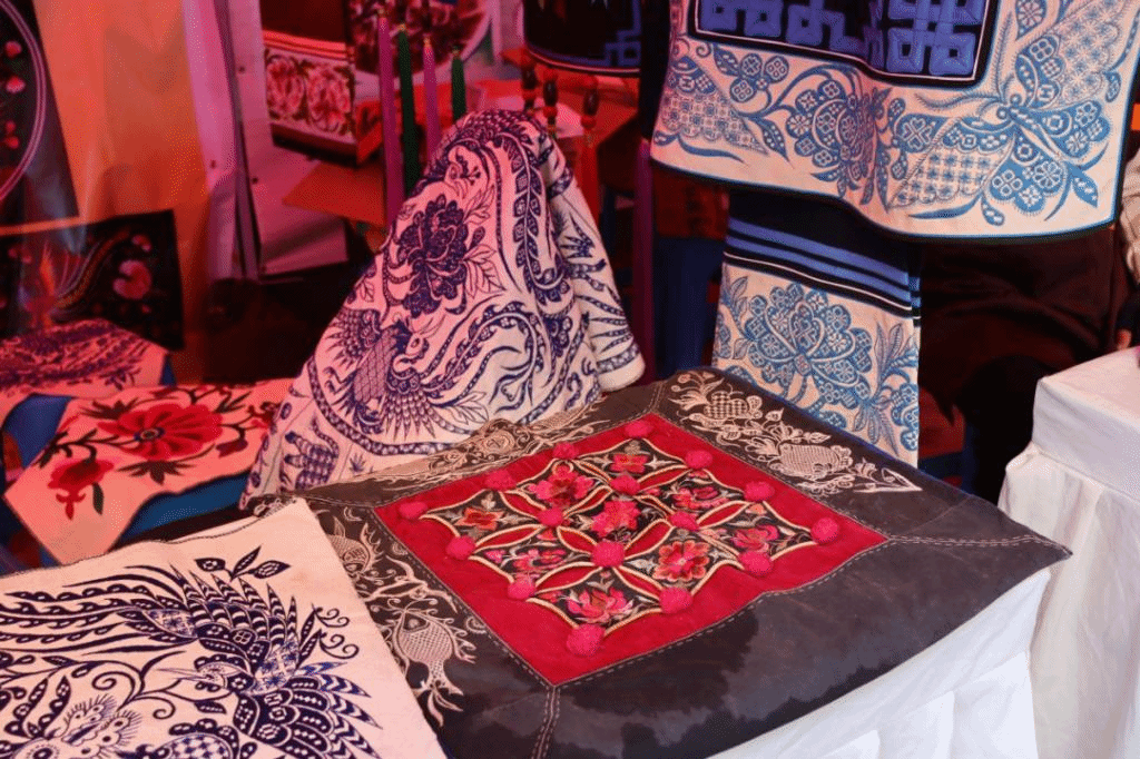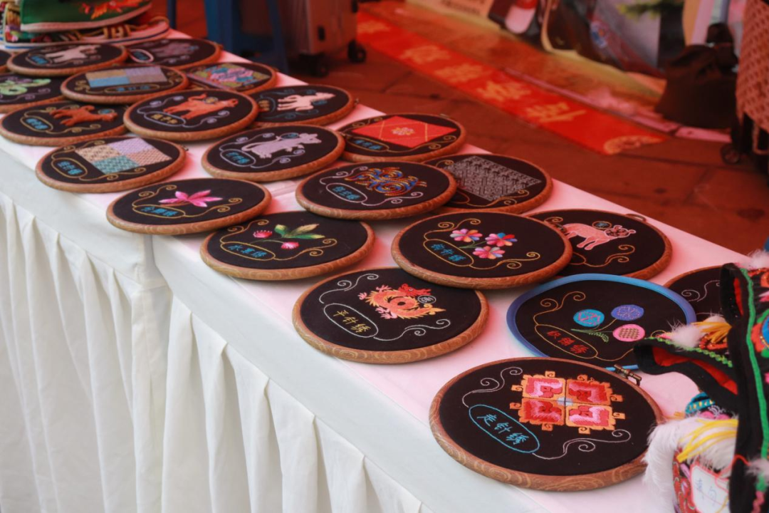 在民族刺绣展区,大家被一件件色彩艳丽、手法精湛的精美刺绣作品深深吸引。禄劝当地手工艺人与现场同学互动交流,介绍了作品背后的故事。“我出生于刺绣世家,家族世代以刺绣谋生。到了我们这一代,很多年轻人选择去学习新的东西,传承这门技艺的人越来越少。但近几年,随着人们的精神文化生活不断丰富,文化自信也不断增强,让非遗文化走进校园成为了现实。”彝绣传承者刘晓洁激动地说道,“彝绣是生活场景的重现。它通过把生活艺术化,表达人们对美好生活的愿景。刺绣是一门深奥的技艺,不能仅凭一腔热血,学习刺绣是一个长期积累的过程,希望这门技艺永远不会被遗忘。”
