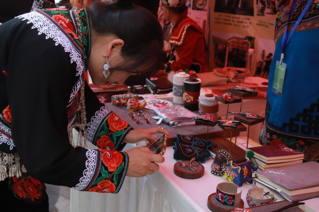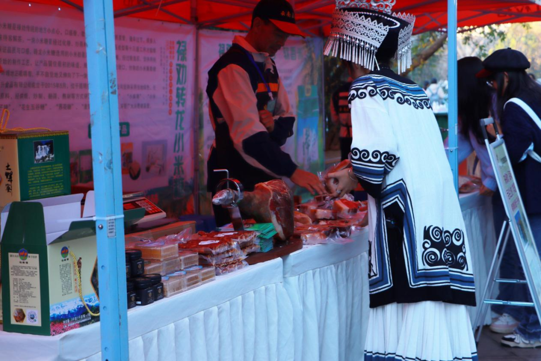 悦耳动听的民族音乐展示、精美绝伦的手工银饰、巧夺天工的彝绣精品、苗族蜡染,以及撒坝火腿、天麻、轿子山泉、则黑苹果等特色农产品……活动引来众多师生围观,大家纷纷抬起手机,记录下这独具禄劝民族特色的精彩活动。