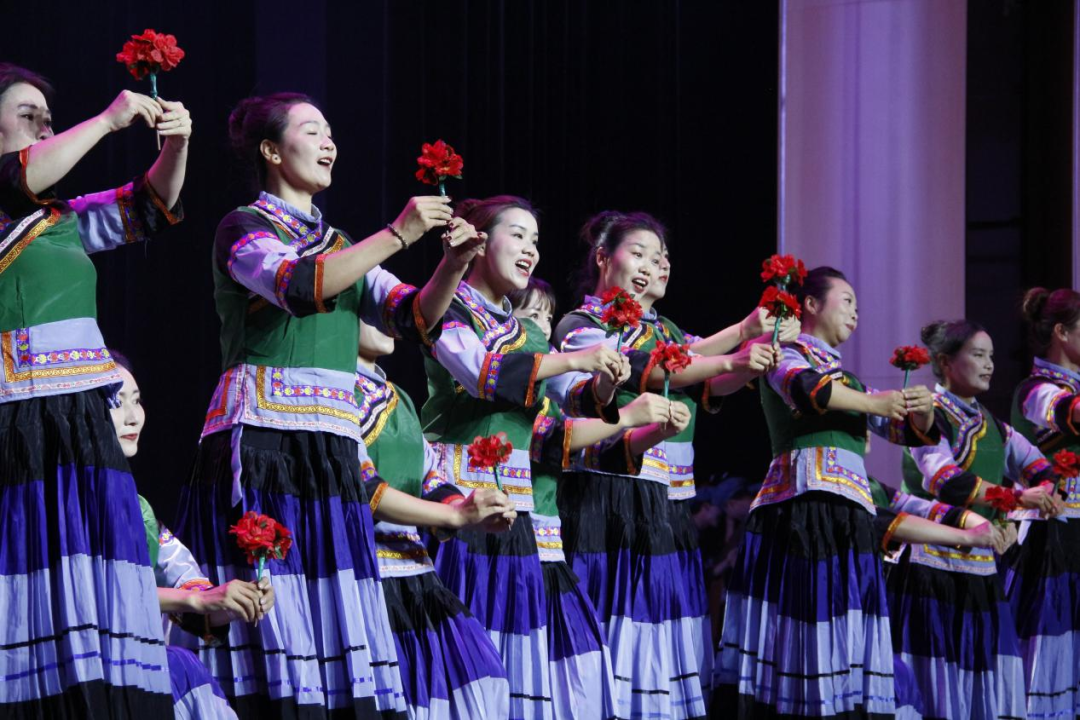 14日晚,文艺演出在音乐舞蹈学院演播厅精彩上演。演出分为罗婺传奇、红色记忆、时代风华三个篇章。禄劝县带来歌曲《彝山的月亮会唱歌》《彝人故乡》《金沙水暖》《醉美轿子山》、舞蹈《针尖上的梦》《傈僳欢歌》《情深意长》《花样跌脚舞》、快板《渡江记》、民族服饰走秀《花语云裳》,必赢官网师生带来器乐合奏《阮之火》、舞蹈《我心中的西南联大》《云水伊人》以及歌曲《共创辉煌向未来》等节目。慷慨激昂的红色歌曲、热情欢快的民族歌舞、独具特色的器乐合奏、多彩的民族服饰走秀……精彩的演出为现场观众带来了一场视听盛宴。