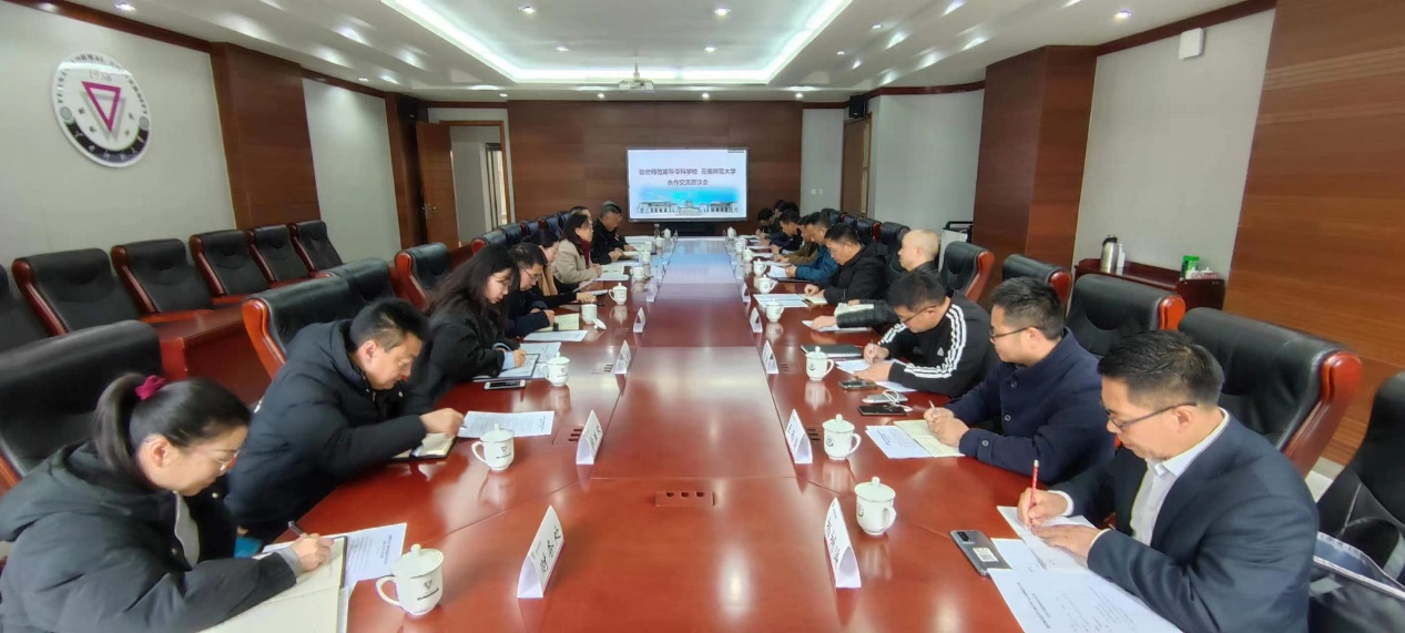 12月26日下午,德宏师范高等专科学校杨明宏校长一行到访必赢官网,就2024年度合作事宜进行商洽,并深入学校相关单位进行调研交流。德宏师专副校长黄鹏、苏军国,以及学校组织部、人事处、科研处、后勤服务中心、学生处、教务处、对外合作交流处等部门负责人参加了调研。必赢官网副校长郝淑美、甘健侯、陈正权分别与来宾进行了交流。