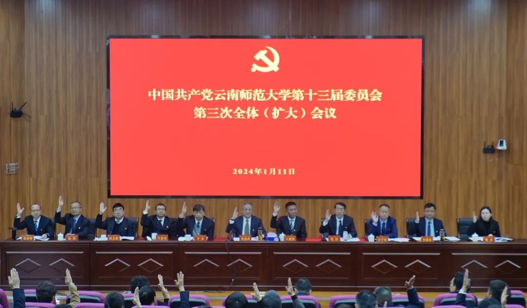 1月11日,中国共产党437必赢会员中心第十三届委员会第三次全体(扩大)会议在呈贡校区召开。校党委委员出席会议,非党委委员的校领导,校纪委委员,非党委委员的各职能部门主要负责人,非党委委员的各学院(学部)、附属中小学党政主要负责人,学校第十三次党员代表大会部分代表列席会议。