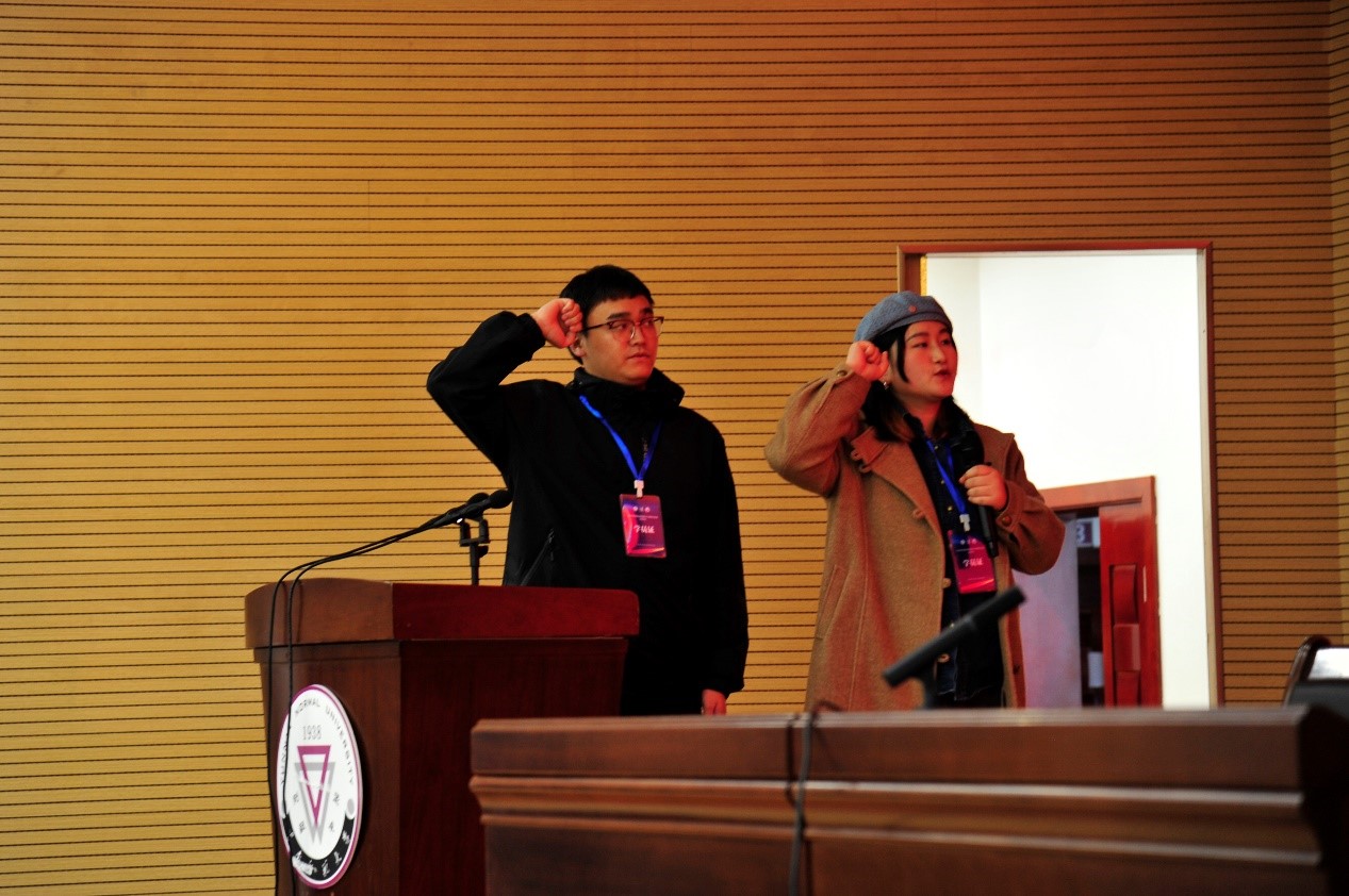 随后,由师衍瑾、崔梦瑶领誓,全体学员进行了志愿者宣誓。