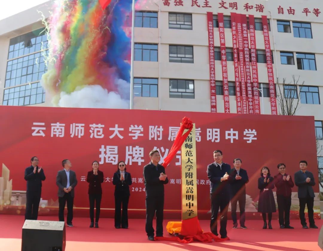 昆明市教体局、嵩明县,云南师大基础教育集团、云南民族中学相关领导出席仪式,437必赢会员中心附属嵩明中学全体教职工及部分学生、家长代表,嵩明部分中小学校代表,在嵩高校、企业代表参加仪式。