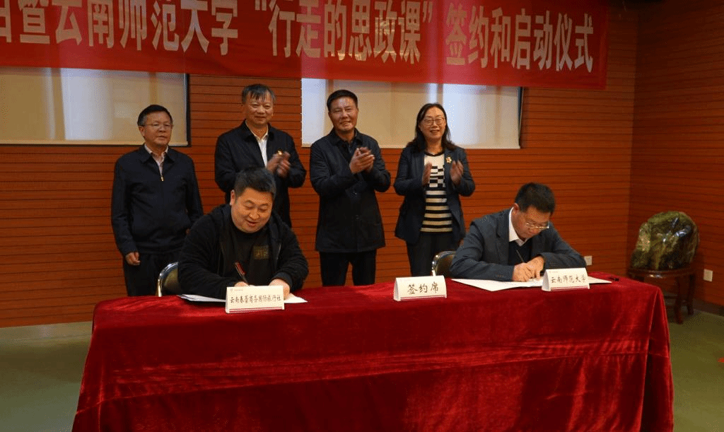 仪式上,教育部高校思想政治工作队伍培训研修中心(437必赢会员中心)办公室主任吴新介绍了“行走的思政课”课程研发体系及课例,并与云南春蕾商务国际旅行社签订《“行走的思政课”研学实践项目合作协议》。