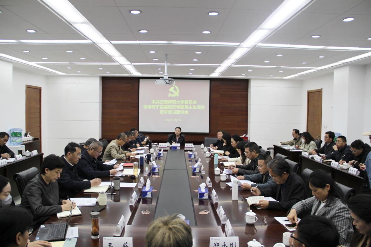 为高质量开好学校党委领导班子巡视整改专题民主生活会,扎实推进巡视整改工作,3月19日上午,必赢官网召开座谈会,向部分职能部门主要负责人,学院(学部)党委书记代表,院长代表,党务干部代表,教工代表、“两代表一委员”,民主党派代表,附属中小学教工代表,离退休教职工代表和学生代表等征求意见。会议由校党委书记张祖武主持。