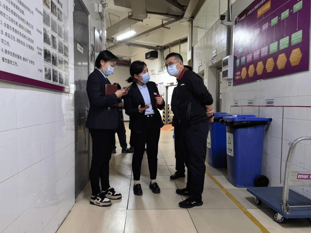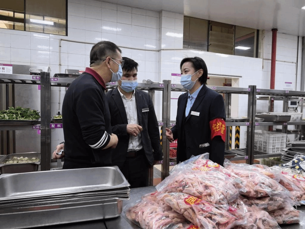 在和园三食堂二楼学生餐厅,牛治亮仔细查看了食品原料存储管理、蔬菜加工、肉类加工、烹饪制作等环节工作情况和食堂有害生物防制设施设备情况,现场听取食堂负责人和食品安全员就食堂加工生产每个环节的管理规范、风险控制工作情况的汇报,详细询问了食品安全员每天的工作内容和食堂现场管理标准。在和园三食堂三楼特色风味餐厅,牛治亮逐一查看了特色档口食品加工生产情况,详细询问档口负责人关于食品原料采购和日常食堂食品安全员现场监督检查等情况。