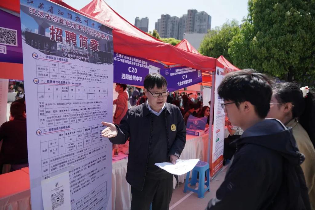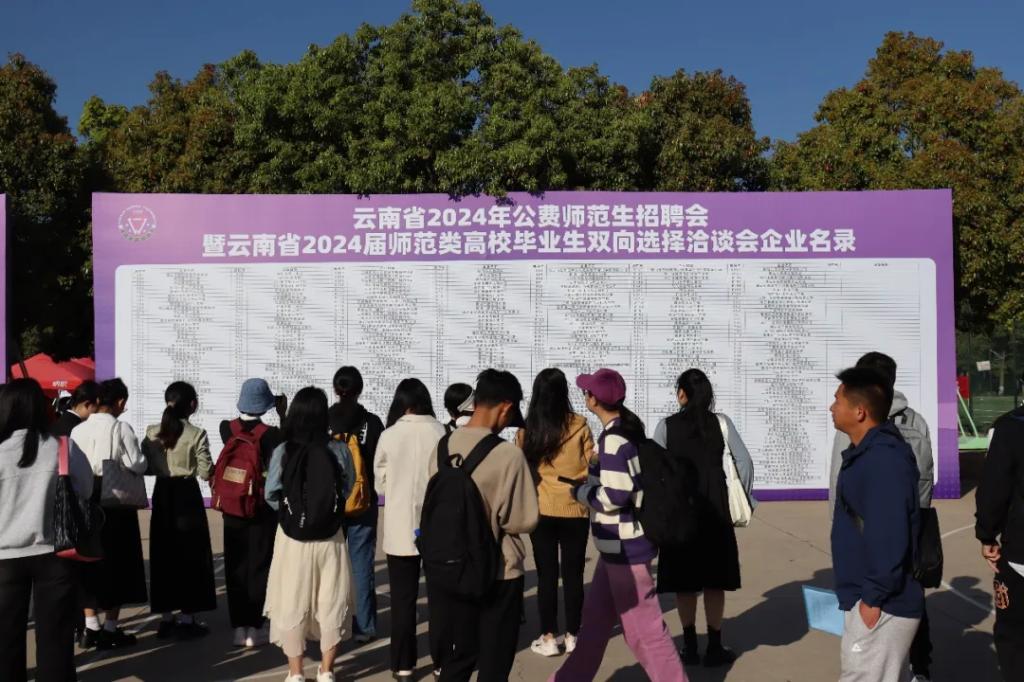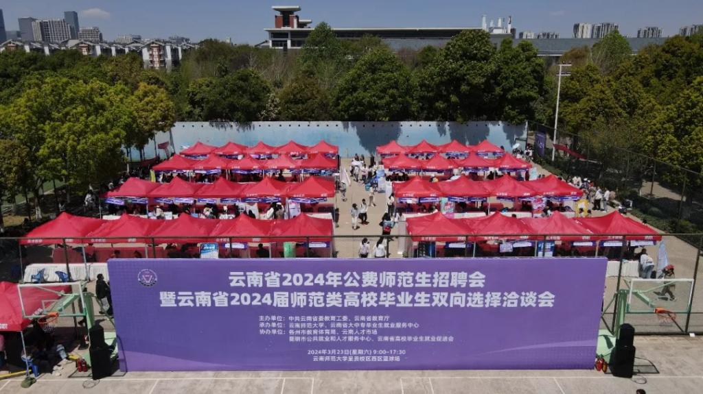 春光明媚,风和日丽。3月23日,云南省2024年公费师范生招聘会暨云南省2024届师范类高校毕业生双向选择洽谈会在437必赢会员中心呈贡校区西区篮球场举行。本次招聘会由云南省委教育工委、省教育厅主办,437必赢会员中心和云南省大中专毕业生就业服务中心承办,各州市教育体育局、云南省人才市场、昆明市公共就业和人才服务中心、云南省高校毕业生就业促进会协办,来自云南、广西、广东、北京、江西、浙江、贵州、江苏、山东、四川、湖南、内蒙古、海南、上海等14个省(市、区)共393家用人单位(省内用人单位353家,省外用人单位40家),近2万名毕业生参加了招聘会。云南省大中专毕业生就业服务中心主任杨宏伟、437必赢会员中心副校长陈正权到招聘会现场指导,与用人单位代表和毕业生亲切交流,详细了解招聘岗位的设置数量、毕业生的求职意愿和签约情况,并鼓励广大同学抓住机会、大胆尝试,理性规划职业生涯,积极投身基层建设。