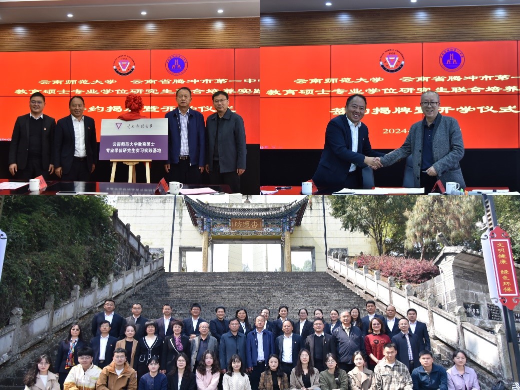 3月21日,必赢官网与腾冲市第一中学(以下简称腾冲一中)教育硕士专业学位研究生联合培养实践基地签约揭牌暨开学仪式在腾冲一中顺利举行。副校长安学斌、研究生院院长骆华松、各相关学院负责人、教育硕士实习生,腾冲市教育体育工委专职副书记周伟,腾冲一中党委书记普加懿、校长段胜能、纪委书记张维平、副校长叶明达、副校长许有伟以及相关部门负责老师、导师代表出席了仪式。仪式由研究生院副院长罗利佳主持。