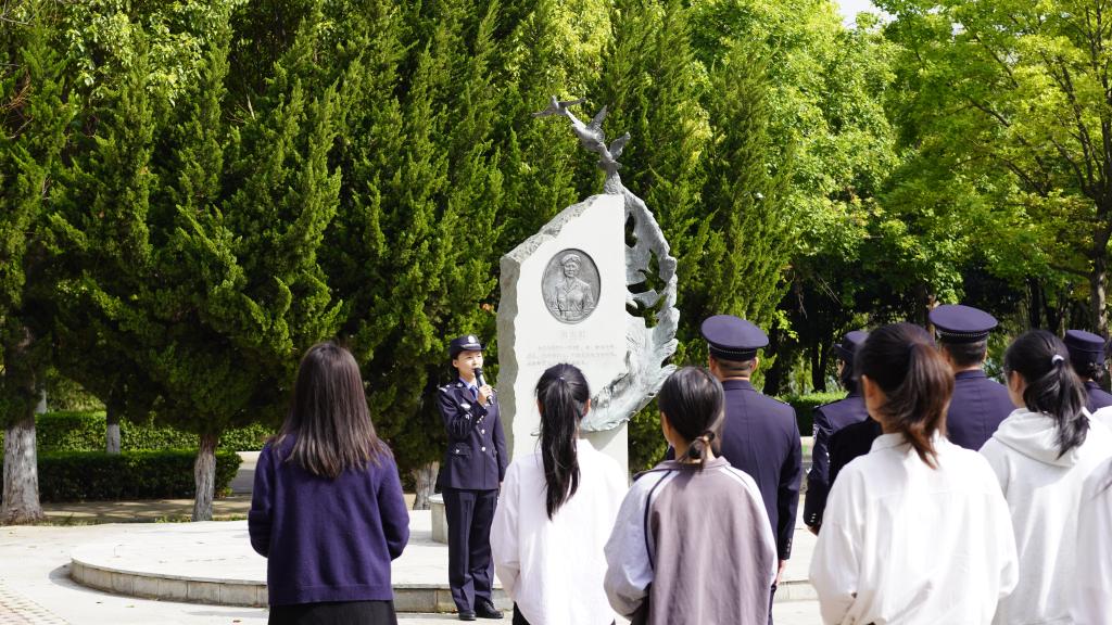 外国语学院学生代表赵可涵发言,表达了对和志虹烈士的崇敬和怀念,表示将学习继承英烈奋斗遗志,砥砺前行,不负时代、不负人民。