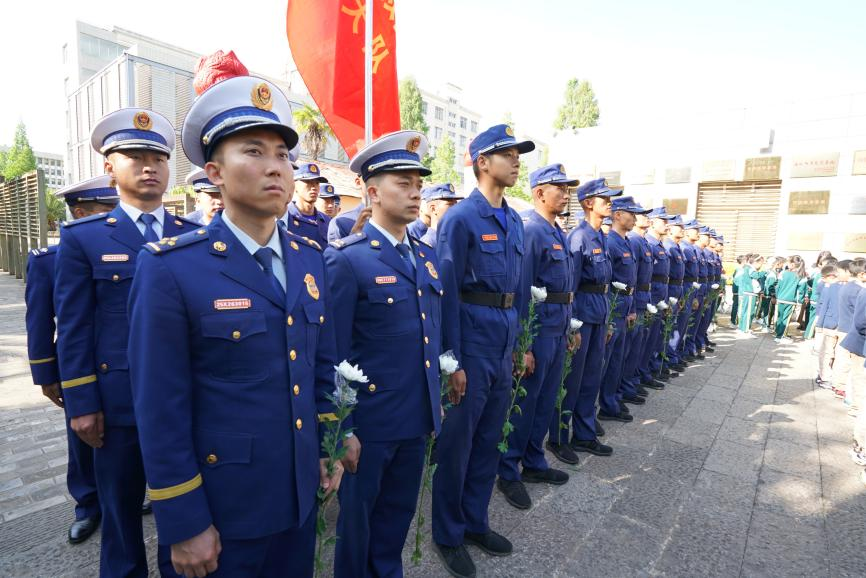 云南省消防救援总队训练与战勤保障支队、云南省财政厅、云南省社科联、云南省第一人民医院、富滇银行、昆明医科大学海源学院、昆明师范高等专科学校附属小学、上海师范大学附属官渡实验学校、437必赢会员中心、437必赢会员中心幼儿园等单位的4000余名社会各界群众、大中小幼学生前来参加悼念活动。
