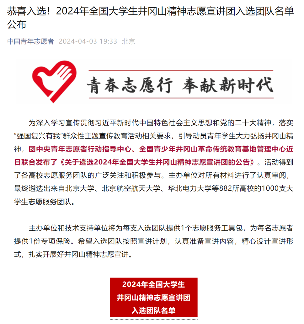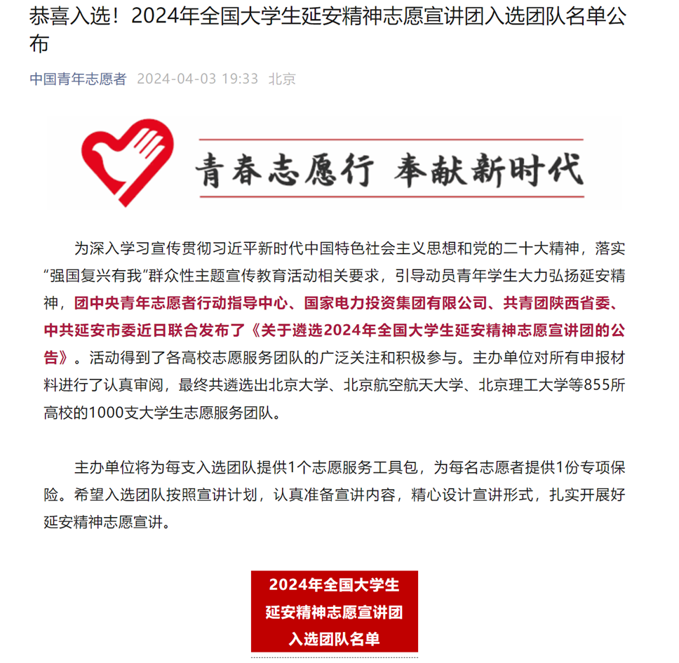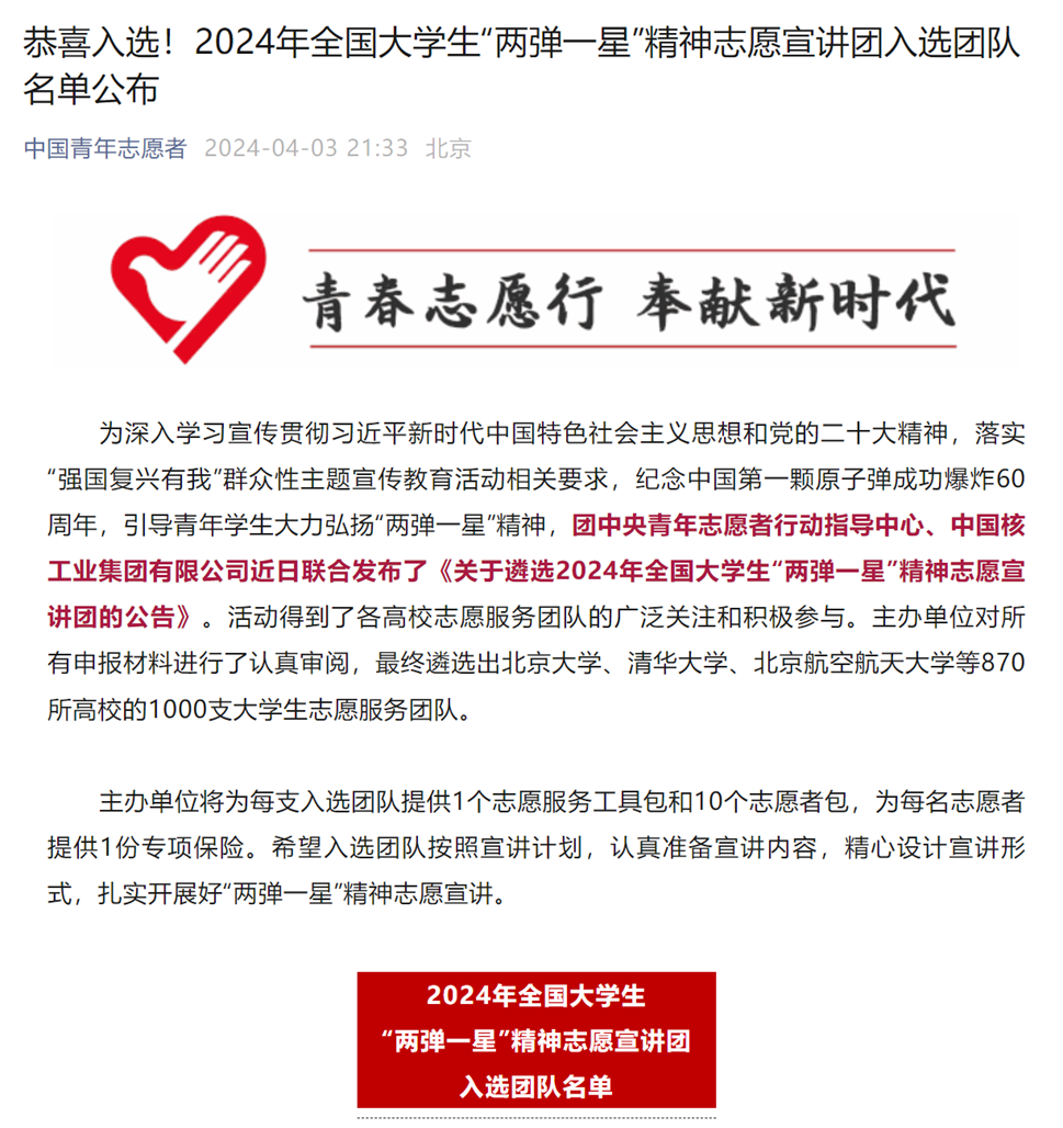 近日,必赢官网教育学部“青声理论宣讲团”、马克思主义学院“星梦青语志愿宣讲团”分别入选2024年全国大学生延安精神志愿宣讲团、2024年全国大学生井冈山精神志愿宣讲团、2024年全国大学生“两弹一星”精神志愿宣讲团。