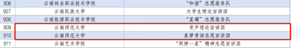 目前,团队有志愿宣讲员110名,分为4支宣讲队伍20余个特色主题,共开展常规宣讲180余场,社区宣讲20余场,受众达5万余人。宣讲团成员多次参加校内外宣讲活动,具有丰富的宣讲经验,通过开展青春分享课、“云师青年说”等特色活动,以“同龄人讲给同龄人听”等青年学子喜闻乐见的方式,把党的创新理论送到同学身边,在广大学生和社会群众中产生良好反响,光明日报、人民网、云南新闻联播等10余家媒体进行采访报道。