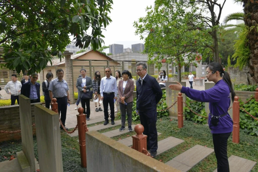 在西南联大博物馆讲解员的引导下,陈希原一行先后参观了西南联合大学原教室、国立西南联合大学纪念碑、国立昆明师范学院纪念标柱、“一二•一”运动四烈士墓等西南联大时期的历史遗迹及西南联大博物馆。