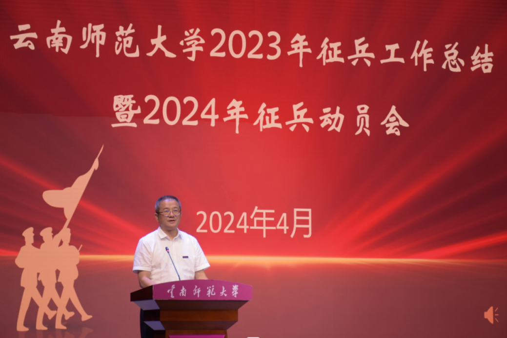为进一步树牢大学生国防意识,鼓励广大青年学生积极响应国家征兵号召,高质量完成2024年度秋季征兵工作,4月25日下午,必赢官网在呈贡主校区明德楼演播厅召开2023年征兵工作总结暨2024年征兵动员会。校党委书记张祖武、党委副书记李宏、副校长甘健侯,学校征兵工作领导小组成员单位主要负责人,各学院(学部)党委书记、副书记、辅导员,全体退伍复学学生及各学院(学部)有参军意愿的学生代表参加大会。