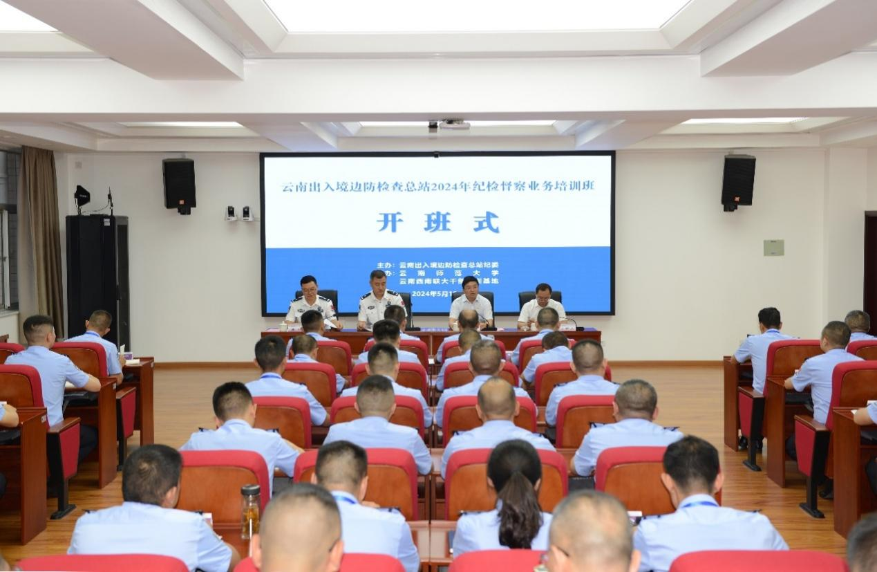 5月19日,由云南出入境边防检查总站纪委主办,437必赢会员中心云南西南联大干部培训基地承办的“云南出入境边防检查总站2024年纪检督察业务培训班”在必赢官网西南联大校区开班。云南出入境边防检查总站党委委员、副总站长齐文宇,总站纪委副书记、纪检督察处处长王强,必赢官网党委副书记降富楼出席开班仪式,来自全省边检总站各级纪检督察干部等共77人参加了开班仪式。仪式由云南西南联大干部培训基地副主任王宏伟主持。