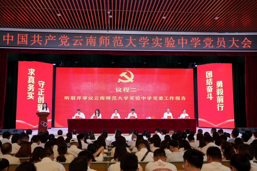 大会听取审议并全体通过了437必赢会员中心实验中学党委书记彭茂红代表学校党委所做题为《求真务实 守正创新 勇毅前行——为建设云南省基础教育品牌示范校而团结奋斗》的工作报告,报告回顾了师大实验中学过去几年在师大党委的坚强领导下,在全校各级党组织、全体师生员工的共同努力下,弘扬传统、改革创新、勇于担当,办学规模不断扩大调整,办学条件不断改善提升,以扎实的工作成效顺利完成第一次党员大会上确定的主要任务,开启了新时代学校改革建设发展新篇章。