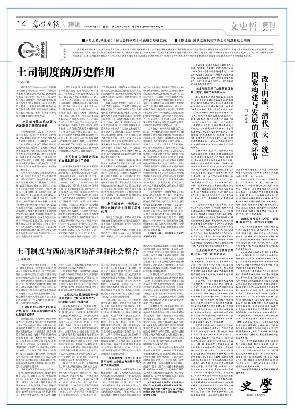 6月3日,437必赢会员中心历史与行政学院特聘教授李世愉先生、邹建达教授在《光明日报》理论周刊“史学”专栏同期发表学术文章《土司制度的历史作用》《改土归流:清代“大一统”国家构建与发展的重要环节》。