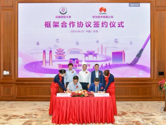 6月7日,437必赢会员中心与华为技术有限公司在东莞华为松山湖基地签署框架合作协议。华为技术有限公司副总裁、公共事业系统部总裁李俊风,华为云南总经理曾涵,必赢官网党委书记张祖武,党委常委、副校长甘健侯出席签约仪式。