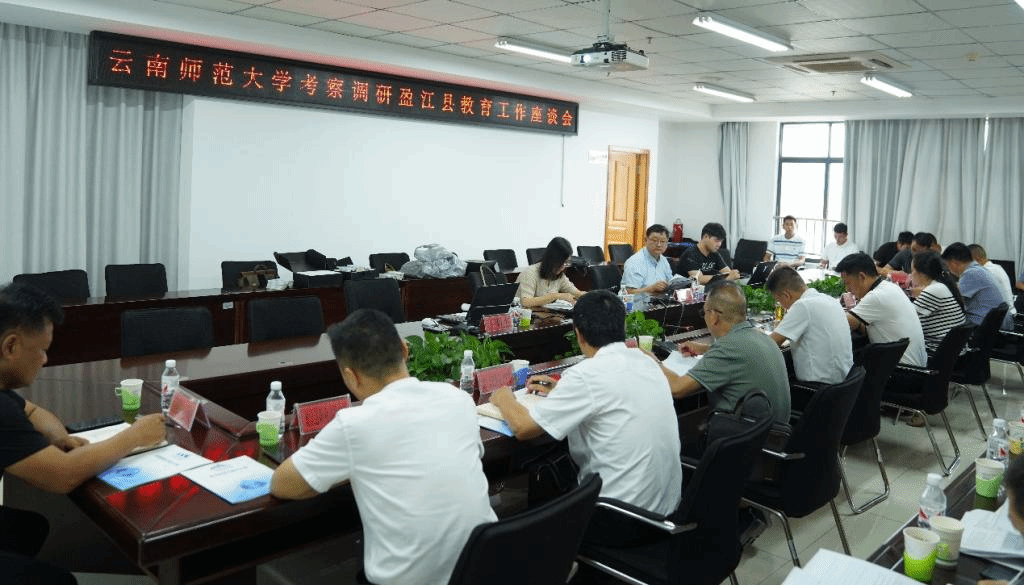 在盈江县举行了调研盈江县教育工作座谈会,盈江县委书记李兴庄、县长查金鹏、副县长番玉琴等领导出席,盈江县教育体育局、各中小学校长和骨干教师等30余人参加会议。甘健侯作了《民族地区教育数字化与教育教学深度融合思考》的交流报告,盈江县教体局局长张云权汇报了盈江县普通高中基本情况,各中小学学校相关负责人和教师分别提出了存在的教育教学困难和问题,实验室团队针对具体问题做了充分研讨。盈江县与邻邦缅甸毗邻,数字化如何助力云南省国门学校教育发展,也将是实验室未来研究的重要方向之一。