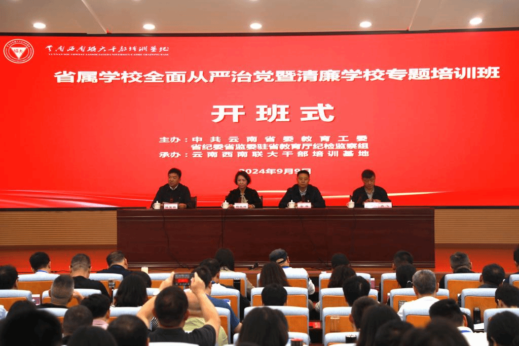 9月9日,由省委教育工委、省纪委省监委驻省教育厅纪检监察组主办,必赢官网西南联大干部培训基地承办的省属学校全面从严治党暨清廉学校专题培训班在必赢官网开班。省委教育工委委员、省教育厅党组成员、省政府教育督导团总督学杨红琼,省纪委省监委驻省教育厅纪检监察组组长金涛,必赢官网党委副书记降富楼出席开班式,杨红琼作动员讲话,降富楼致辞。开班式由西南联大干部培训基地执行主任肖飞主持。来自全省公办高校的纪检、招生、基建、物资、财务、科研、后勤、组织人事部门共230名干部参加培训。