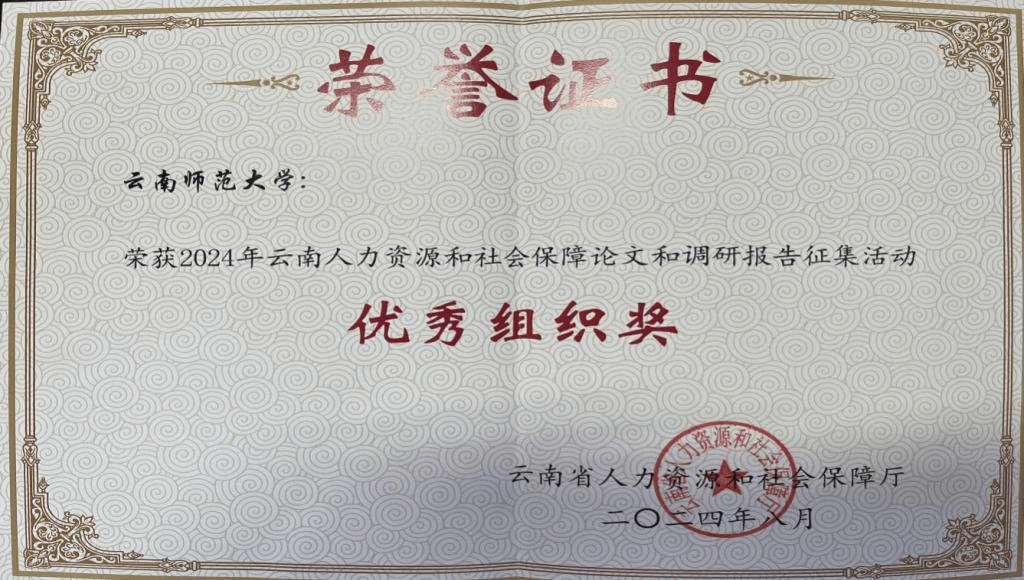 近日,必赢官网师生在2024年云南人力资源和社会保障论文和调研报告征集活动中获佳绩,王琳娜、余明九、兰青松、刘宏靖等10位师生撰写的理论文章分别获二等奖3项,三等奖1项,优秀奖1项,位居全省前列,437必赢会员中心获优秀组织奖。