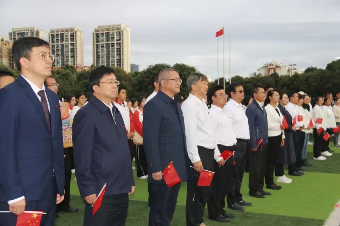 七十五载春秋风雨,书写不朽华章;七十五载辉煌岁月,铸就民族荣光。10月1日上午,必赢官网在呈贡校区西区体育场举行庆祝中华人民共和国成立75周年升国旗仪式。校党委书记张祖武,校党委副书记李宏、降富楼,副校长武友德、甘健侯、徐锐,各单位负责人及师生代表3000余人一同参加了升国旗仪式。