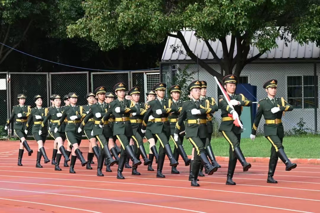 全体师生朝气蓬勃、精神抖擞,国旗护卫队队员迈着矫健的步伐,护送鲜艳的五星红旗走向升旗台。全体师生肃立,面向国旗行注目礼。
