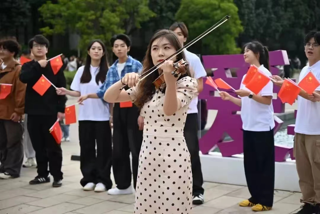 在热烈庆祝中华人民共和国成立75周年之际,云师学子以演奏、合唱、舞蹈等多种形式深情告白祖国母亲。真情流露的歌声、优雅翩跹的舞姿、婉转动听的乐声,寄托着大家对伟大祖国最真挚的祝福。