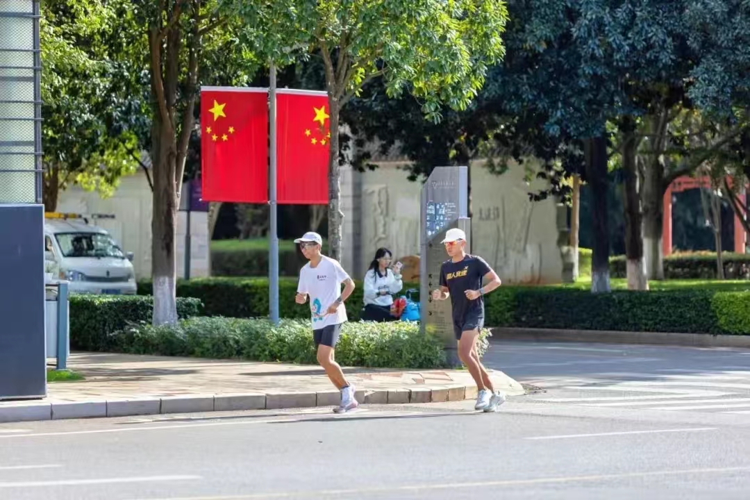 本科生黄瑜、硕士生杨翔程、博士生周佳露作为学生代表在国旗下献词,分享了新时代云师青年对祖国的热爱与深情告白。黄瑜表示要以刘朝栋、刘浩等云师奥运健儿为榜样,用汗水和努力诠释为国争光的真正意义,“我们要铭记历史,将个人理想融入祖国建设,以行动表达对祖国的热爱,用奋斗铸就美好未来。”杨翔程动情地说:“我将一如既往深入田间地头,将论文写在祖国大地上,用实际行动服务乡村全面振兴。”周佳露表示,作为新时代青年,要将西南联大精神融入学习、研究、工作中,锤炼个人才干,以实干笃定前行。