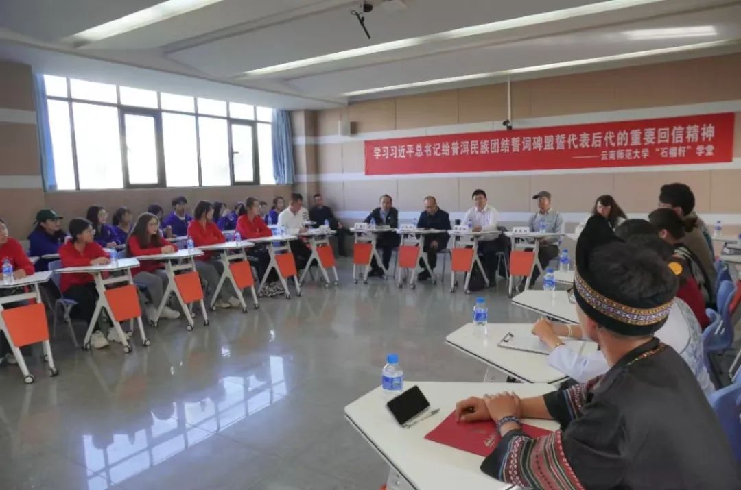 座谈会上,师生共同深入学习习近平总书记给普洱民族团结誓词碑盟誓代表后代的回信,深刻感悟习近平总书记对云南各族人民的亲切关怀和殷切希望。