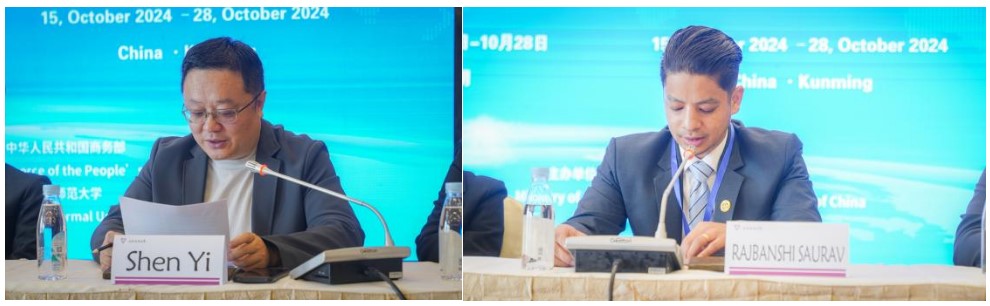 研修班学员代表杰班希•索拉夫先生感谢中方举办此期研修班。他向中方介绍了悉达多·瓦纳斯塔利学院的相关情况。他期望通过此期研修班,能学到中国在教育领域的成功经验和好的做法,回国后运用到实际工作中,助推尼泊尔学校的发展。