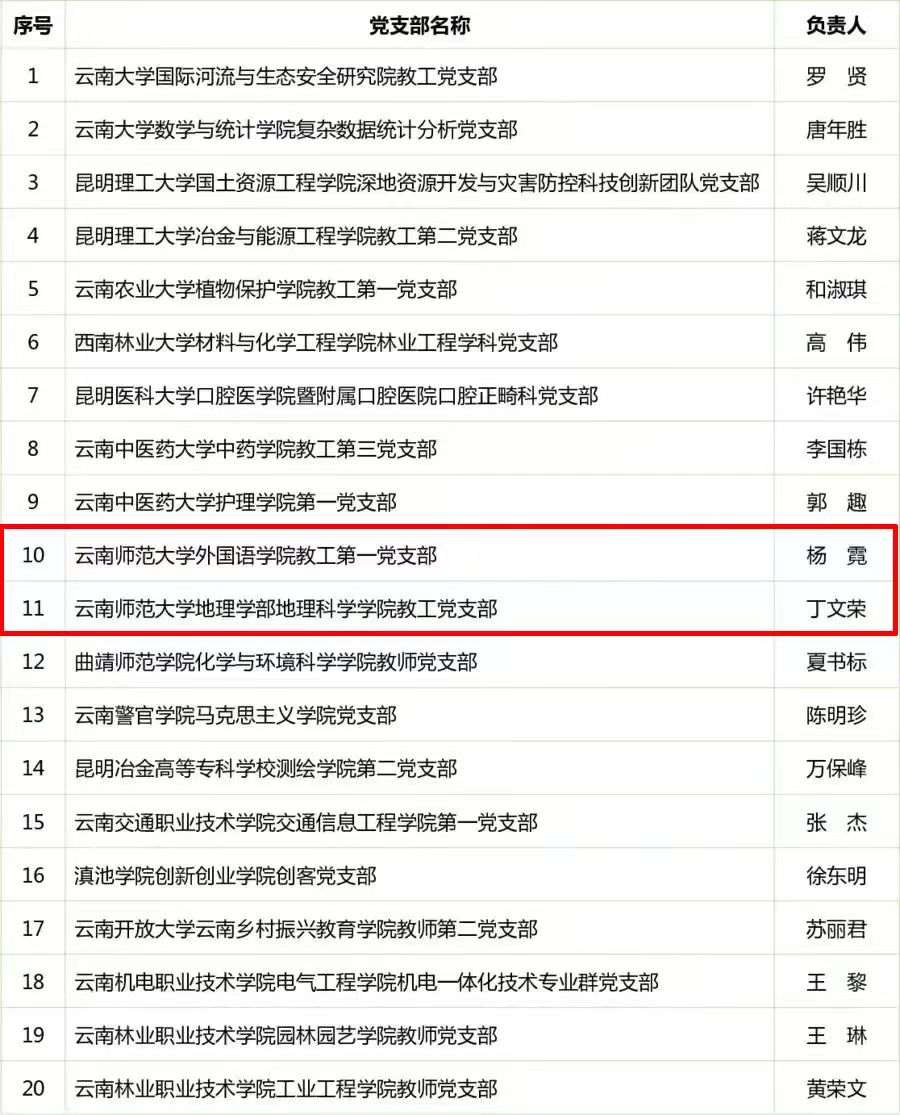 全国高校“双带头人”教师党支部书记“强国行”专项行动团队云南入选名单