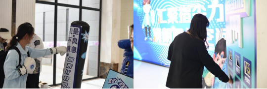在互动环节,活动现场设置的趣味互动打卡装置吸引师生踊跃参与。大家在“枪形键盘打卡区”感受网络“键盘侠”肆意发言的危害;在“拳力以赴打卡区”通过击打沙袋体验打击网络有害信息的决心;在“网络有害信息碎纸机”前认真阅读卡片内容,对八大类有害信息进行甄别和投放,积极体验网上有害信息举报流程。