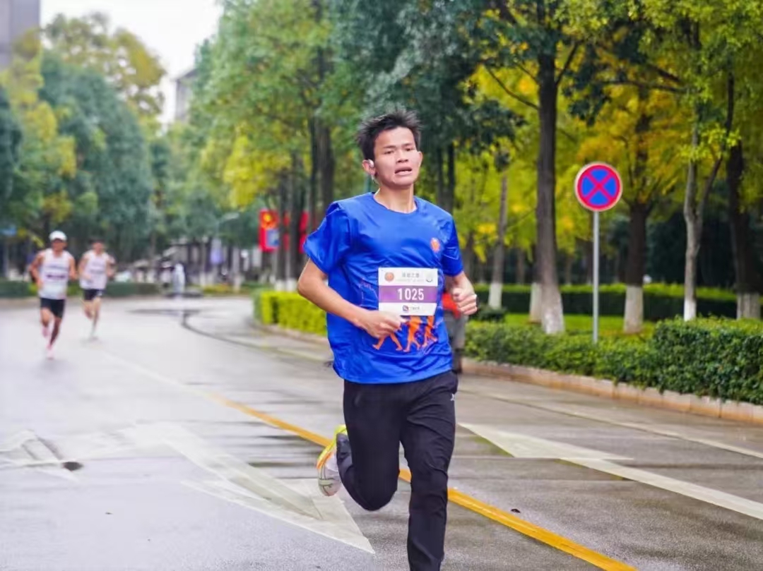 此时天空中下着小雨,但运动员们精神焕发、信心满满,大家在雨中热情奔跑,展现了新时代青年的活力与风采。“今天我的心情无比激动。这已经是我第二次参加校园跑活动了。虽然跑步时下着小雨,气温也比较低,但学校贴心地为我们准备了很多,让我们能更好地享受跑步的过程。”第一个冲线的同学王庭辉激动地说。