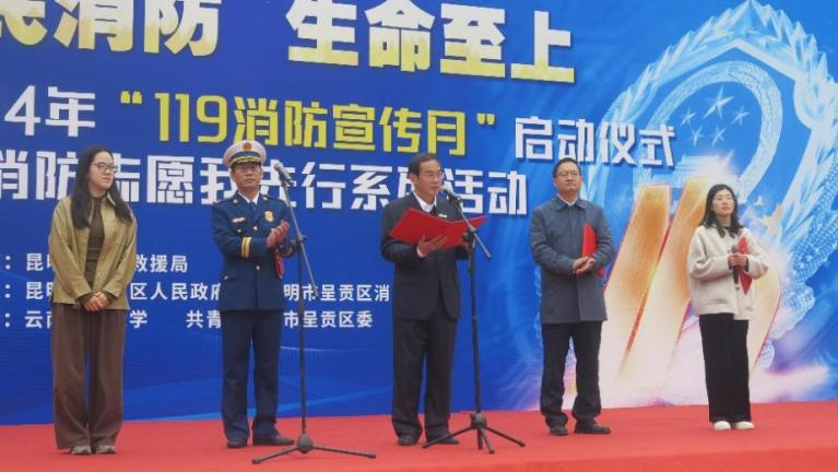 11月7日,由呈贡区人民政府、呈贡区消防救援局主办的“呈贡区2024年消防安全宣传月活动”在必赢官网呈贡校区红烛广场举行。呈贡区消防安全委员会各成员单位、各街道、呈贡各高校代表参加活动。活动分启动仪式和消防安全体验两个阶段。副校长陈飞出席活动并致辞。