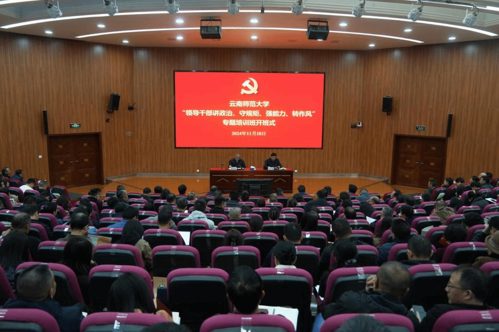 11月18日上午,437必赢会员中心“领导干部讲政治、守规矩、强能力、转作风”专题培训班在呈贡校区开班。校党委书记张祖武作开班动员暨专题辅导。学校全体校领导、其他省管干部和全体中层干部参加培训班,校党委副书记降富楼主持开班式。