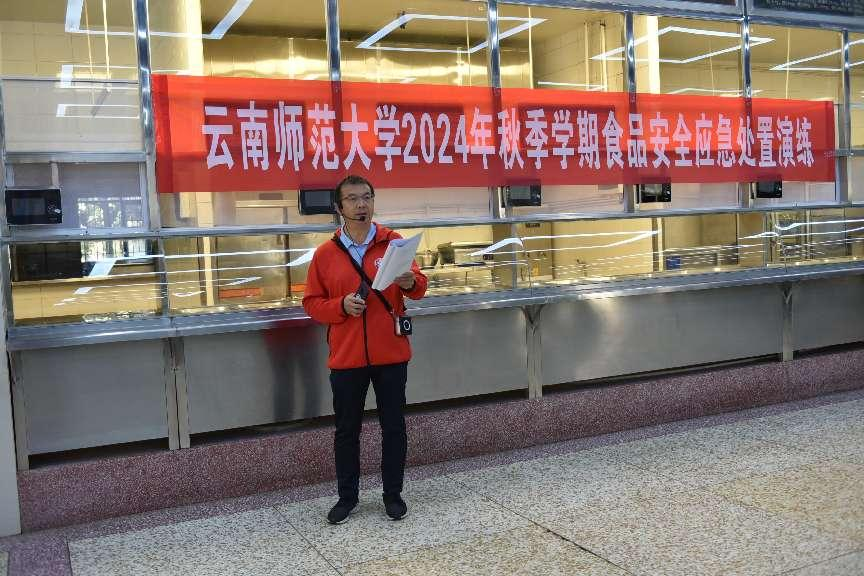 应急处置演练现场总指挥牛治亮副校长对演练进行总结。牛治亮指出,本次现场演练处置流程符合校情,能够有效应对食品安全突发事件,能够与政府部门食品安全应急处置预案无缝对接。牛治亮要求,各单位要切实提高政治站位,坚持守土有责、守土负责、守土尽责。后勤保障服务中心和资产经营有限责任公司要切实履行食品安全主体责任,以持续推进食堂食品加工生产和销售服务全环节的精细化、标准化建设为抓手,以钉钉子精神,强化食堂员工教育培训和食品加工过程指导监督,抓牢抓实食品安全风险“日管控”“周排查”“月调度”,切实扛牢守护校园食品安全职责,为维护校园安全稳定保驾护航。