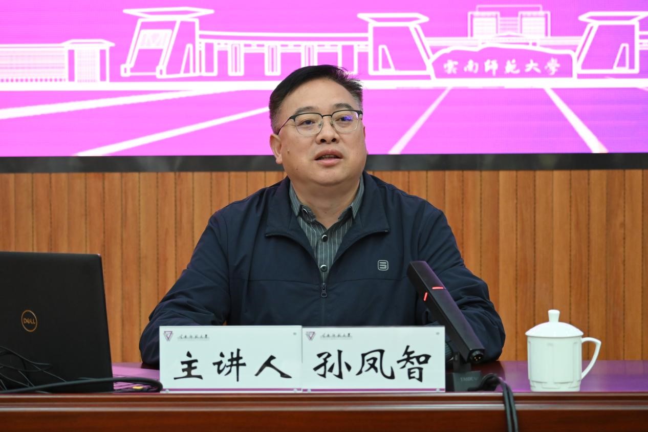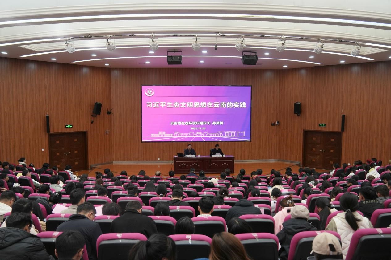 11月26日,省生态环境厅党组成员、副厅长孙凤智到必赢官网作题为《习近平生态文明思想在云南的实践》专题形势政策报告。
