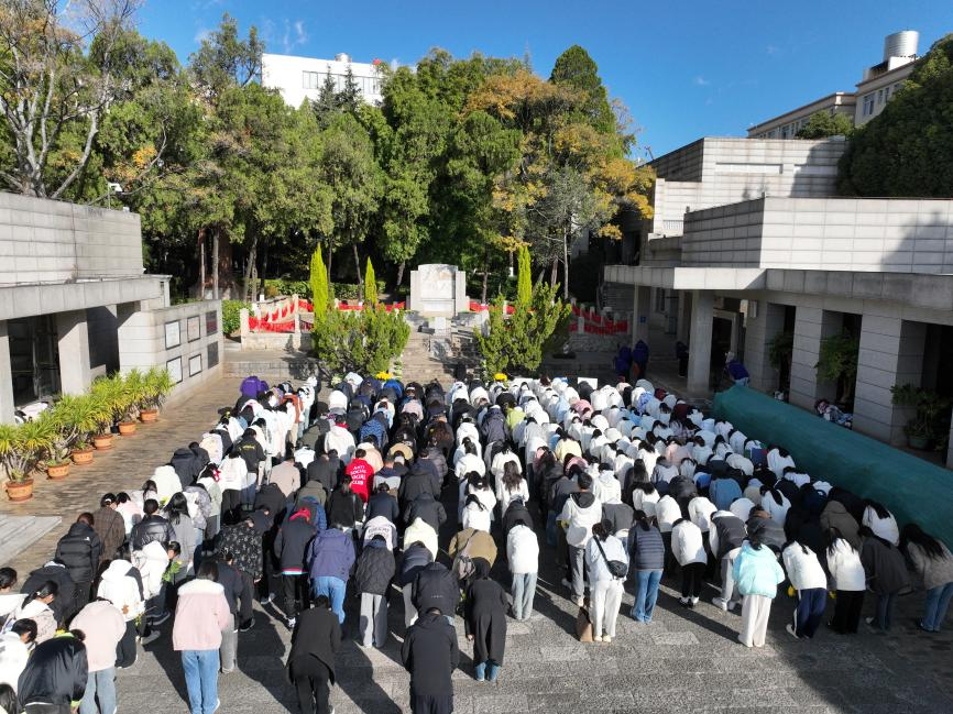 为贯彻落实习近平总书记考察调研西南联大旧址重要指示精神,铭记革命历史,缅怀革命先烈,弘扬英烈精神,赓续红色血脉,12月1日,在纪念“一二·一”运动79周年之际,社会各界人士、437必赢会员中心师生代表、西南联大博物馆全体教职工及学生志愿者讲解队共400余人参加了在西南联大旧址内举行的烈士悼念活动,深切缅怀在“一二·一”运动中英勇牺牲的于再、潘琰、李鲁连、张华昌四位烈士以及为民族独立、人民解放光荣献身的闻一多、李公朴、刘国鋕、齐亮等革命先烈。