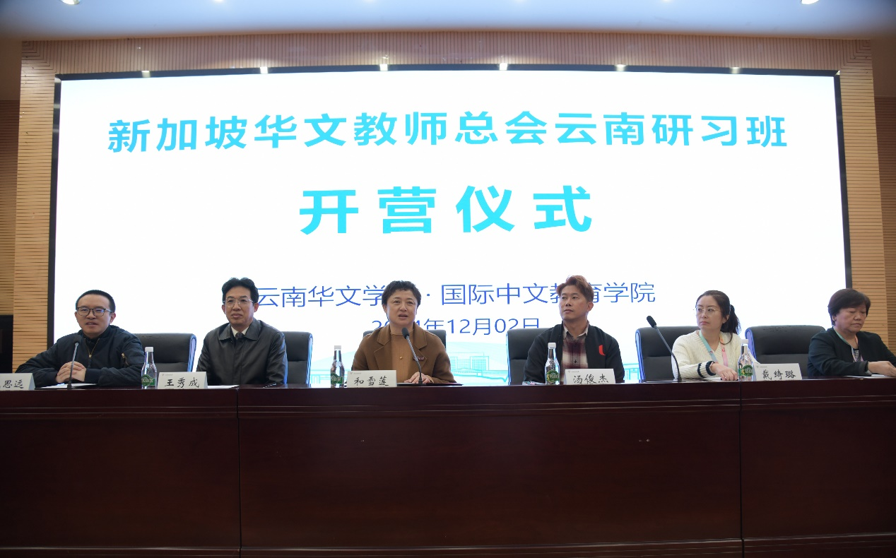 12月2日上午,新加坡华文教师总会云南研习班在必赢官网开班。云南华文学院党委书记和雪莲、院长王秀成,新加坡华文教师总会理事长汤俊杰、咨询顾问连慧英及相关人员参加了开班仪式。