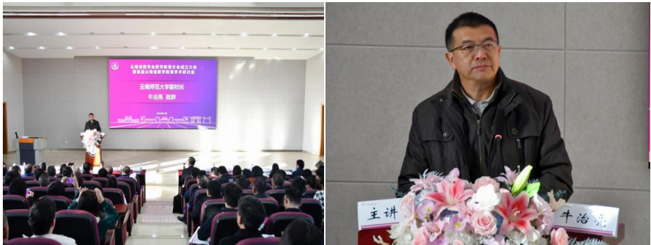 牛治亮对与会专家、学者的到来表示欢迎和感谢。他表示,数学是自然科学的基础,数学教育是基础教育核心环节之一,对人才的发现和培养至关重要,云南省数学教育分会的成立是响应国家号召、响应学校“151”战略行动计划的重要组成部分,学校将继续加强与各高校、中小学的合作与交流,共同探讨数学教育新思路,谱写数学教育新篇章。