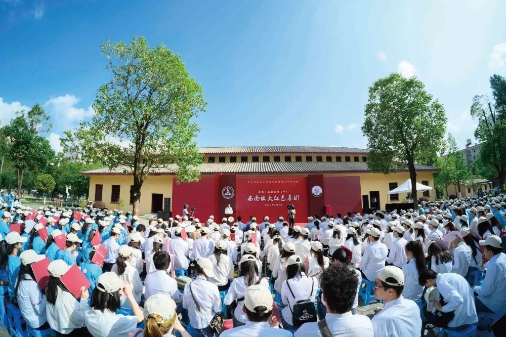 组建西南联大爱国精神师生宣讲团,走进高校、大中小学、社区等开展宣讲,受众达700余万人次。图为在西南联大旧址开展的“西南联大红色基因”主题宣讲