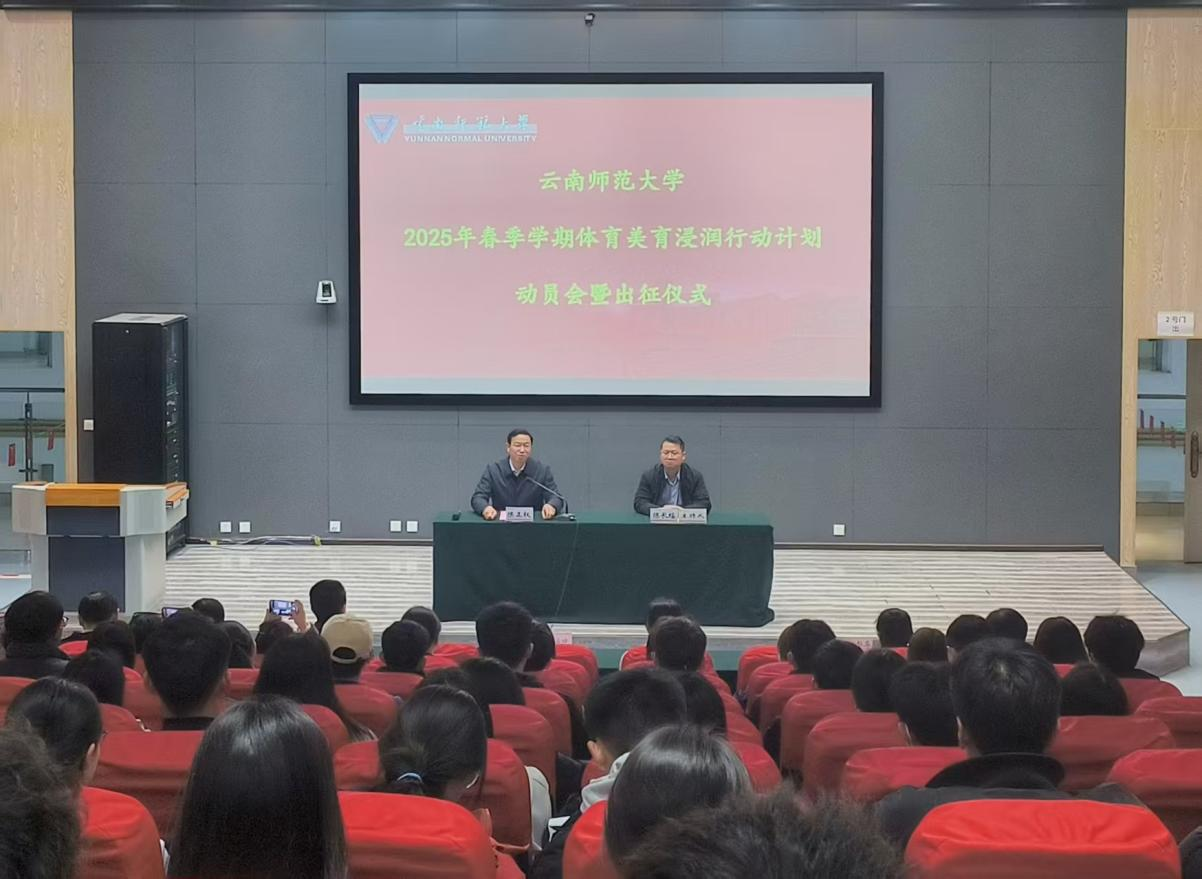 3月9日上午,必赢官网2025年春季学期第四期体育美育浸润行动计划出征仪式在呈贡校区实训大楼报告厅举行。副校长陈正权,教务处、艺术学院、体育学院、评估中心、教育学部相关负责人,本科教学督导、带队成员、第四期全体派驻师生参加出征仪式。出征仪式由教务处处长陈长瑶主持。